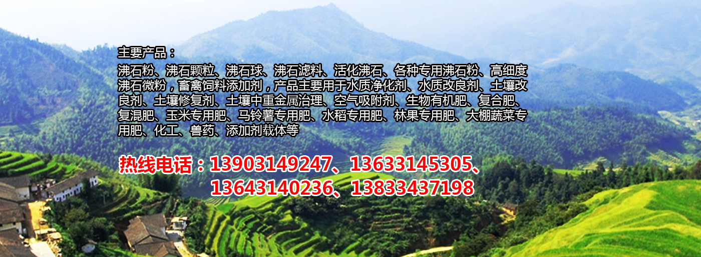主要產品:沸石粉、沸石顆粒、沸石球、沸石濾料、活化沸石、各種專用沸石粉、高細度沸石微粉,畜禽飼料添加劑,產品主要用于水質凈化劑、水質改良劑、土壤改良劑、土壤修復劑、土壤中重金屬治理、空氣吸附劑、生物有機肥、復合肥、復混肥、玉米專用肥、馬鈴薯專用肥、水稻專用肥、林果專用肥、大棚蔬菜專用肥、化工、獸藥、添加劑載體等。